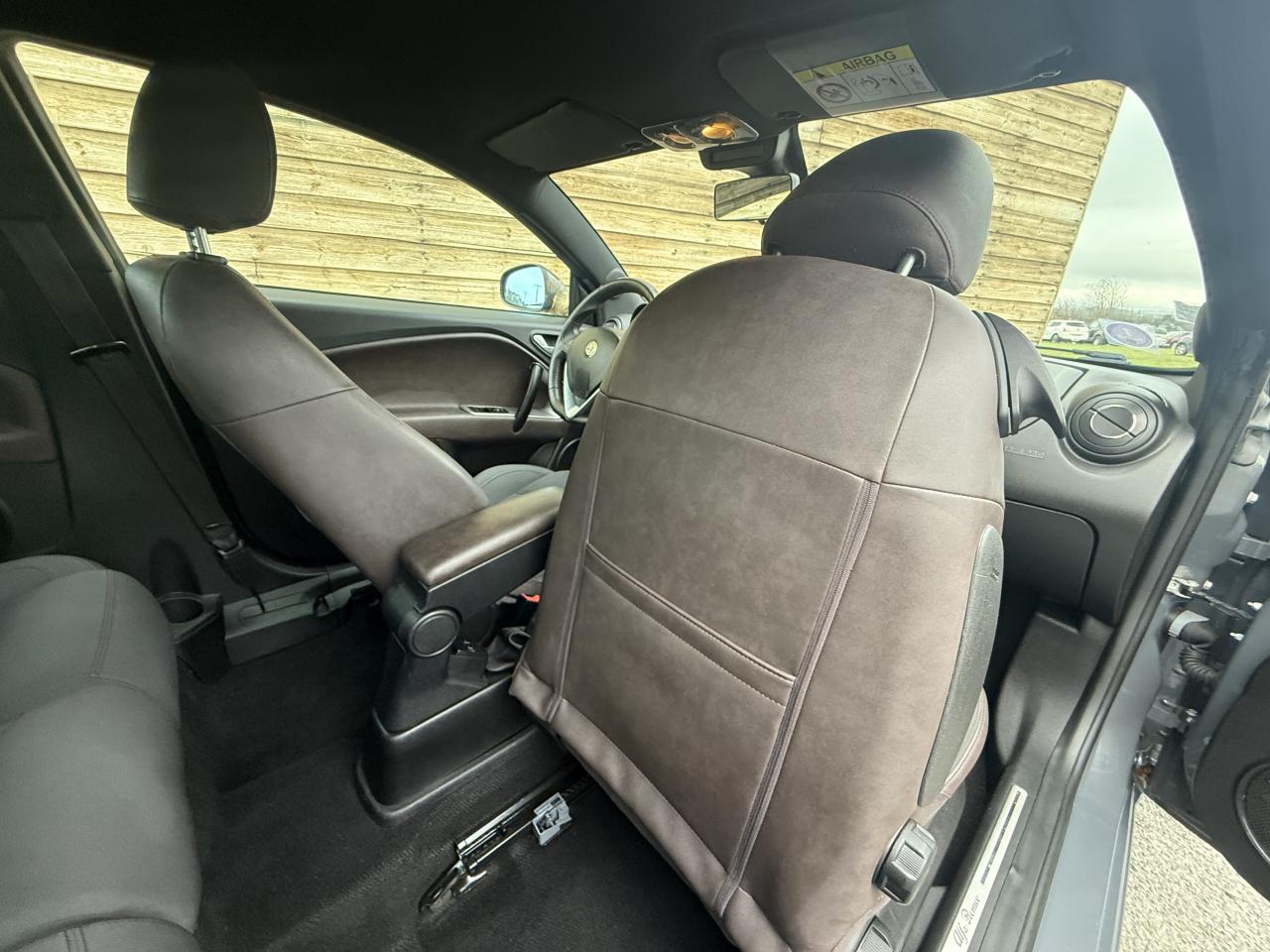 Accoudoir central avant avec espace de rangementAlfa D.N.A.Cerclages de phares Chrome SatinéClimatisation automatique bi-zoneCommandes radio au volant pour UconnectCoques de rétroviseurs marronInstrumentation de bord sportJantes 17'' design Elegante finition marronOrdinateur de bordPare-chocs arrière Sport avec extracteurPlanche de bord SprintPoignées de portes Chrome SatinéRégulateur de vitesseSellerie arrière 3 places rabattable 2/3-1/3Sellerie tissu / simili-cuir gris-marron, et panneaux portes en simili cuirSièges avant à réglage lombairesSortie d'échappement chroméeSpoiler arrièreSticker de toitSystème infotainment VP2 avec BluetoothTapis de sol CollezioneVitres arrière privativesVolant gainé cuirVolant gainé de cuir meplat avec surpiqures