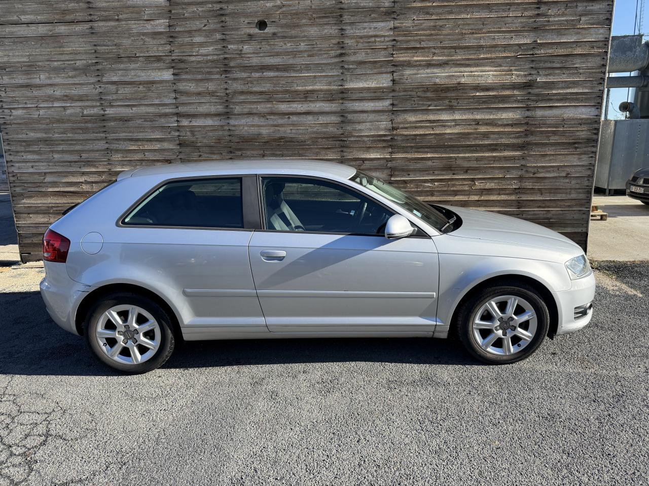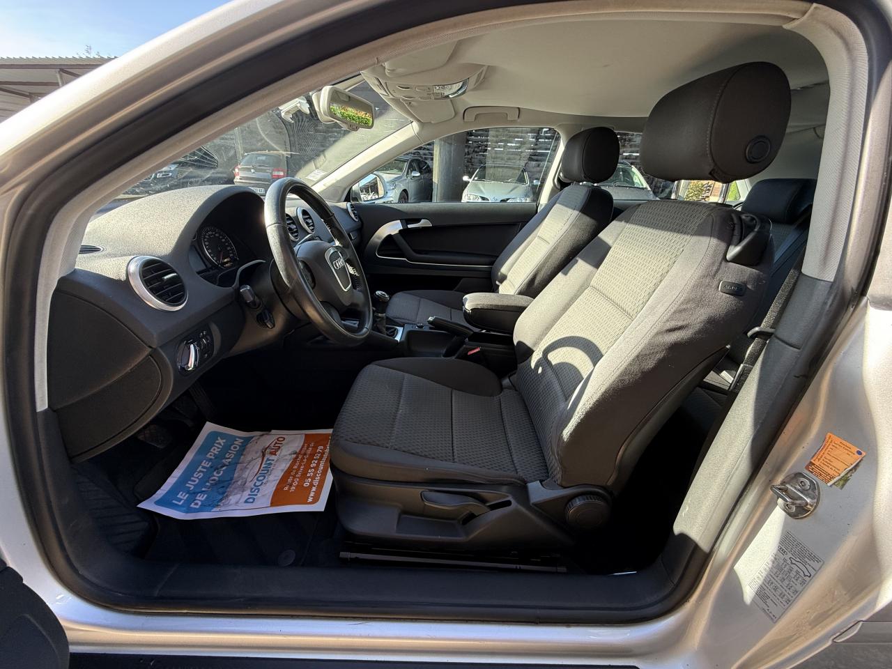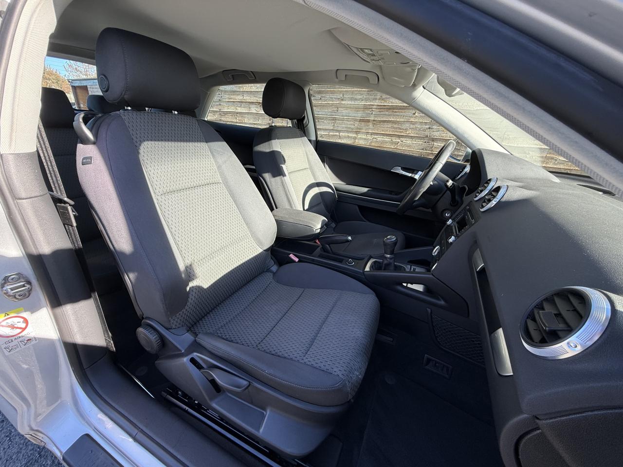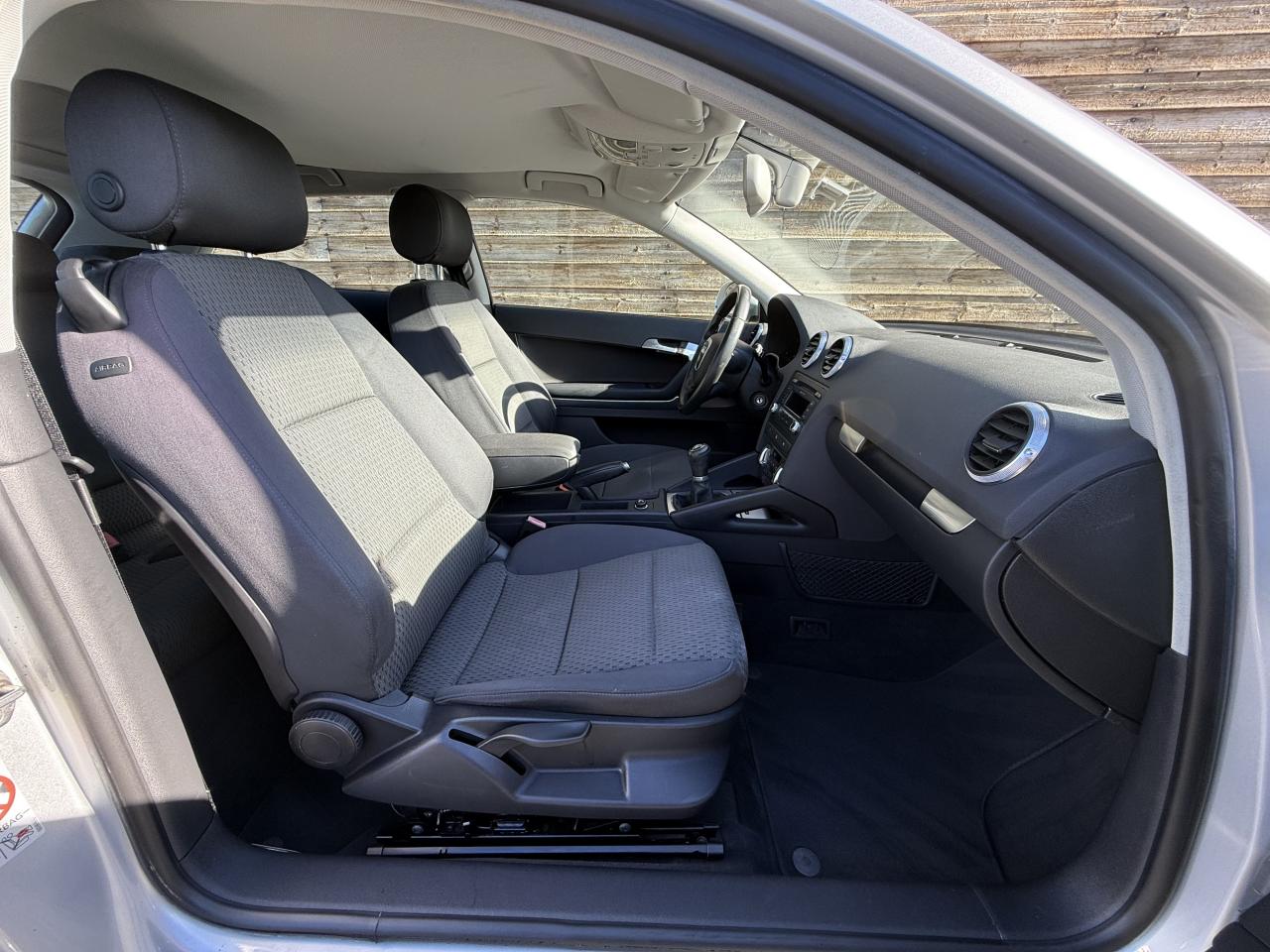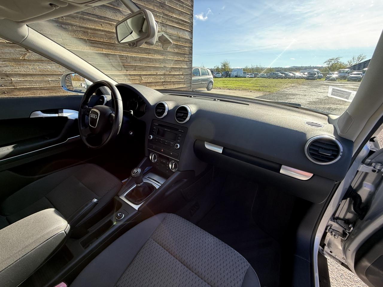 3ème feu stop arrièreABS (Antiblocage de roues)Accoudoir central avant, avec vide-poches relevable et inclinaison réglableAirbags (conducteur, passager avant, airbag latéral, airbag de tête)Antipatinage ASR : empêche le patinage des roues motrices ; assure une motricité optimaleApplications décoratives platine micrométalliqueApplications décoratives sur les portières, différentes selon la finition choisieAppuie-tête à toutes les places, actifs à l'avant ; réglables à l'avant et à l'arrièreAudi Backguard, en cas de collision arrière, la conception du siège permet l'amortissement du haut du corps et le soutien plus précoce de la têteAvertisseur ''2 tons''Baguettes de protection latérales couleur carrosserieBaguettes de seuil de portes avec inserts en aluminium et inscription AudiBanquette arrière rabattable 1/3-2/3BAS : amplificateur électronique de freinage d'urgenceBoîte à gants grand volume côté passager avant, éclairéeCache-bagagesCarrosserie galvanisée, autoportante, soudée au groupe plancherCatadioptres de portière passifsCeintures de sécurité trois points à enrouleur à toutes les placesChâssis “Sport”Climatisation automatique Confort avec réglage asservi à la position du soleilColonne de direction de sécuritéCommande des feux pour feux de stationnement, feux de route, projecteurs antibrouillards et feu arrière de brouillardConsole centrale avec commandes du chauffage et vide-pochesCrochets pour sacs à gauche et à droite dans le coffreDétecteur d'occupation des sièges avantDétecteur de luminosité et de pluie + fonction Coming Home/Leaving HomeDétecteur de pluie et allumage automatique des projecteursDéverrouillage du coffre par touche assistée électriquement, commande supplémentaire pour déverrouiller le coffre depuis la place conducteurDirection assistée électromécanique, assistance asservie à la vitesseEasy Entry : fonction étendue de basculement des sièges avant permettant un accès facile aux places arrièreEBV : Répartiteur électronique de freinageEclairage blanc, réglable, sur les instruments ; éclairage rouge sur les commandes et le tableau de la climatisationEclairage intérieur à extinction temporisée et contacteurs sur toutes les portièresEcrous antivolEDS (blocage électronique de différentiel)Essuie-glace arrière avec commande de lavage-balayage automatiqueEssuie-glace deux vitesses avec commande automatiqueFeux arrière rouges, feu de recul blanc, avec feu arrière de brouillardFreins à disques à l'avant et à l'arrière, ventilés à l'avantHabillage de portières avec partie centrale en tissu et accoudoir intégréIndicateur de température extérieureInscriptions sur le capot de coffre. À gauche : A3, au centre : anneaux Audi, à droite : identification du modèleInstrumentation à éclairage réglableJantes en aluminium coulé style 5 branches en étoile, 7,5 J x 17”, avec pneus 225/45 R 17Lunette arrière dégivrante, avec minuterieMiroir de courtoisie côté conducteur et passagerMoquetteOeilletons de fixation dans le coffreOrdinateur de bord avec contrôle autocheck et indicateur de température extérieureOutillage de bordPare-chocs dans la couleur de la carrosseriePare-soleil gauche et droite rabattables et orientables avec miroir de courtoisie éclairé et occultable, troisième pare-soleil rabattable au-dessus du rétroviseur intérieurPare-soleil pour la lunette arrièrePare-soleil pour lunette arrière rabattable manuellementPatères sur les montants de pavillon centraux, 2 patèresPoignées de maintien, quatre, encastrées dans le pavillon, rabattables avec amortisseurPoignées de portières affleurantes dans la couleur de carrosseriePommeau et soufflet de levier de vitesse en cuir, anneau décoratif style aluminiumPorte-boissons avant avec jalousie, double, sur le tunnel centralPrise de courant à l'avant, avec vide-poches sur la console centraleProgramme de stabilité électronique (ESP)Projecteurs antibrouillard ellipsoïdaux intégrés au bouclier avantProjecteurs antibrouillard halogène AVProjecteurs halogènes à surfaces libres sous vitre transparente, feux diurnes, réglage électrique du site des phares et commande de feu de stationnementProtection anticollision latérale dans les portières, constituée de profilés d'aluminium rigidesProtection antidémarrage électroniqueProtection durable sous le plancher et dans les passages de roueRadio Concert, avec lecteur CD en façade et compatibilité MP3, mémoire pour 12 stations, réception FM et AM (MO), clavier à touches douces et écran trois lignes, réglage de volume asservi à la vitesse, phases diversifiées, 8 haut-parleurRadio Concert, avec lecteur CD en façade et compatibilité MP3, prise AUX-INRégulateur de vitesseRepose-pied à côté de la pédale d'embrayageRéservoir situé dans une zone protégéeRétroviseur intérieur jour/nuit dans la couleur du ciel de pavillonRétroviseurs extérieurs avec rappels de clignotant à diodes, réglables électriquement, boîtiers dans la couleur de la carrosserie, miroir convexe côté passagerRoue de secours temporaireSellerie tissu DynamiqueSiège conducteur réglable en hauteurSiège passager avant réglable en hauteur manuellementSiège passager réglable en hauteurSièges avant avec position avant/arrière et inclinaison du dossier réglables manuellement ; appuie-têtes réglables et ceintures réglables en hauteurSièges avant Sport avec bourrelets latéraux enveloppant pour un meilleur maintien dans les viragesSignal sonore pour oubli d'extinction des feux ; éclairage des instruments réglable en continuSingleframe : encadrement décoratif chromé sur la calandre avec anneaux Audi anodisés au centreSite des phares réglable manuellementSoft Touch : Assistance électrique permettant un déverrouillage sans effort du capot de coffreSortie d'échappement visible, doubleSortie d'échappement visible, simpleSystème d'airbags de tête sideguardSystème d'informat