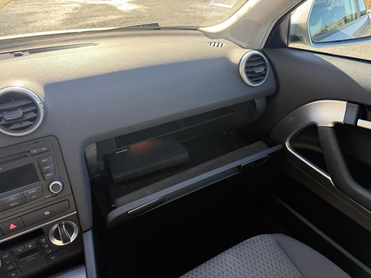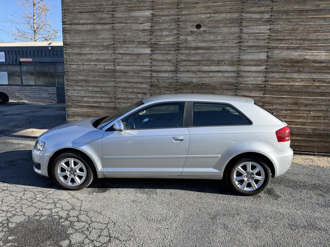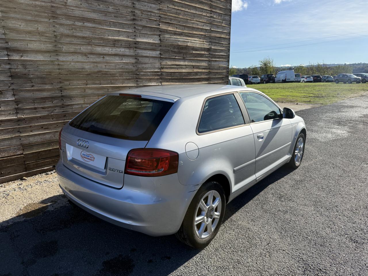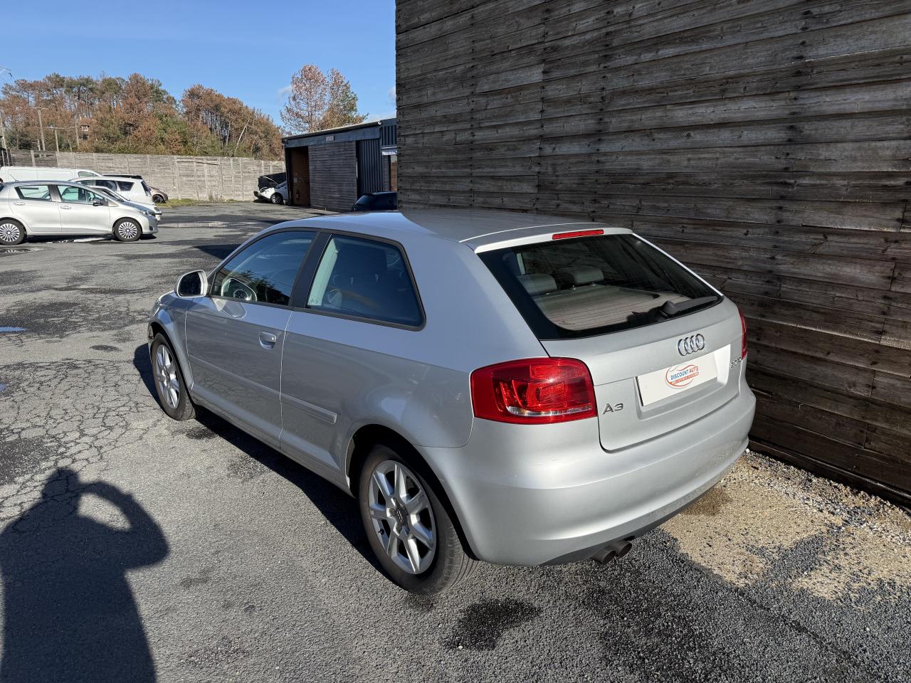 3ème feu stop arrièreABS (Antiblocage de roues)Accoudoir central avant, avec vide-poches relevable et inclinaison réglableAirbags (conducteur, passager avant, airbag latéral, airbag de tête)Antipatinage ASR : empêche le patinage des roues motrices ; assure une motricité optimaleApplications décoratives platine micrométalliqueApplications décoratives sur les portières, différentes selon la finition choisieAppuie-tête à toutes les places, actifs à l'avant ; réglables à l'avant et à l'arrièreAudi Backguard, en cas de collision arrière, la conception du siège permet l'amortissement du haut du corps et le soutien plus précoce de la têteAvertisseur ''2 tons''Baguettes de protection latérales couleur carrosserieBaguettes de seuil de portes avec inserts en aluminium et inscription AudiBanquette arrière rabattable 1/3-2/3BAS : amplificateur électronique de freinage d'urgenceBoîte à gants grand volume côté passager avant, éclairéeCache-bagagesCarrosserie galvanisée, autoportante, soudée au groupe plancherCatadioptres de portière passifsCeintures de sécurité trois points à enrouleur à toutes les placesChâssis “Sport”Climatisation automatique Confort avec réglage asservi à la position du soleilColonne de direction de sécuritéCommande des feux pour feux de stationnement, feux de route, projecteurs antibrouillards et feu arrière de brouillardConsole centrale avec commandes du chauffage et vide-pochesCrochets pour sacs à gauche et à droite dans le coffreDétecteur d'occupation des sièges avantDétecteur de luminosité et de pluie + fonction Coming Home/Leaving HomeDétecteur de pluie et allumage automatique des projecteursDéverrouillage du coffre par touche assistée électriquement, commande supplémentaire pour déverrouiller le coffre depuis la place conducteurDirection assistée électromécanique, assistance asservie à la vitesseEasy Entry : fonction étendue de basculement des sièges avant permettant un accès facile aux places arrièreEBV : Répartiteur électronique de freinageEclairage blanc, réglable, sur les instruments ; éclairage rouge sur les commandes et le tableau de la climatisationEclairage intérieur à extinction temporisée et contacteurs sur toutes les portièresEcrous antivolEDS (blocage électronique de différentiel)Essuie-glace arrière avec commande de lavage-balayage automatiqueEssuie-glace deux vitesses avec commande automatiqueFeux arrière rouges, feu de recul blanc, avec feu arrière de brouillardFreins à disques à l'avant et à l'arrière, ventilés à l'avantHabillage de portières avec partie centrale en tissu et accoudoir intégréIndicateur de température extérieureInscriptions sur le capot de coffre. À gauche : A3, au centre : anneaux Audi, à droite : identification du modèleInstrumentation à éclairage réglableJantes en aluminium coulé style 5 branches en étoile, 7,5 J x 17”, avec pneus 225/45 R 17Lunette arrière dégivrante, avec minuterieMiroir de courtoisie côté conducteur et passagerMoquetteOeilletons de fixation dans le coffreOrdinateur de bord avec contrôle autocheck et indicateur de température extérieureOutillage de bordPare-chocs dans la couleur de la carrosseriePare-soleil gauche et droite rabattables et orientables avec miroir de courtoisie éclairé et occultable, troisième pare-soleil rabattable au-dessus du rétroviseur intérieurPare-soleil pour la lunette arrièrePare-soleil pour lunette arrière rabattable manuellementPatères sur les montants de pavillon centraux, 2 patèresPoignées de maintien, quatre, encastrées dans le pavillon, rabattables avec amortisseurPoignées de portières affleurantes dans la couleur de carrosseriePommeau et soufflet de levier de vitesse en cuir, anneau décoratif style aluminiumPorte-boissons avant avec jalousie, double, sur le tunnel centralPrise de courant à l'avant, avec vide-poches sur la console centraleProgramme de stabilité électronique (ESP)Projecteurs antibrouillard ellipsoïdaux intégrés au bouclier avantProjecteurs antibrouillard halogène AVProjecteurs halogènes à surfaces libres sous vitre transparente, feux diurnes, réglage électrique du site des phares et commande de feu de stationnementProtection anticollision latérale dans les portières, constituée de profilés d'aluminium rigidesProtection antidémarrage électroniqueProtection durable sous le plancher et dans les passages de roueRadio Concert, avec lecteur CD en façade et compatibilité MP3, mémoire pour 12 stations, réception FM et AM (MO), clavier à touches douces et écran trois lignes, réglage de volume asservi à la vitesse, phases diversifiées, 8 haut-parleurRadio Concert, avec lecteur CD en façade et compatibilité MP3, prise AUX-INRégulateur de vitesseRepose-pied à côté de la pédale d'embrayageRéservoir situé dans une zone protégéeRétroviseur intérieur jour/nuit dans la couleur du ciel de pavillonRétroviseurs extérieurs avec rappels de clignotant à diodes, réglables électriquement, boîtiers dans la couleur de la carrosserie, miroir convexe côté passagerRoue de secours temporaireSellerie tissu DynamiqueSiège conducteur réglable en hauteurSiège passager avant réglable en hauteur manuellementSiège passager réglable en hauteurSièges avant avec position avant/arrière et inclinaison du dossier réglables manuellement ; appuie-têtes réglables et ceintures réglables en hauteurSièges avant Sport avec bourrelets latéraux enveloppant pour un meilleur maintien dans les viragesSignal sonore pour oubli d'extinction des feux ; éclairage des instruments réglable en continuSingleframe : encadrement décoratif chromé sur la calandre avec anneaux Audi anodisés au centreSite des phares réglable manuellementSoft Touch : Assistance électrique permettant un déverrouillage sans effort du capot de coffreSortie d'échappement visible, doubleSortie d'échappement visible, simpleSystème d'airbags de tête sideguardSystème d'informat