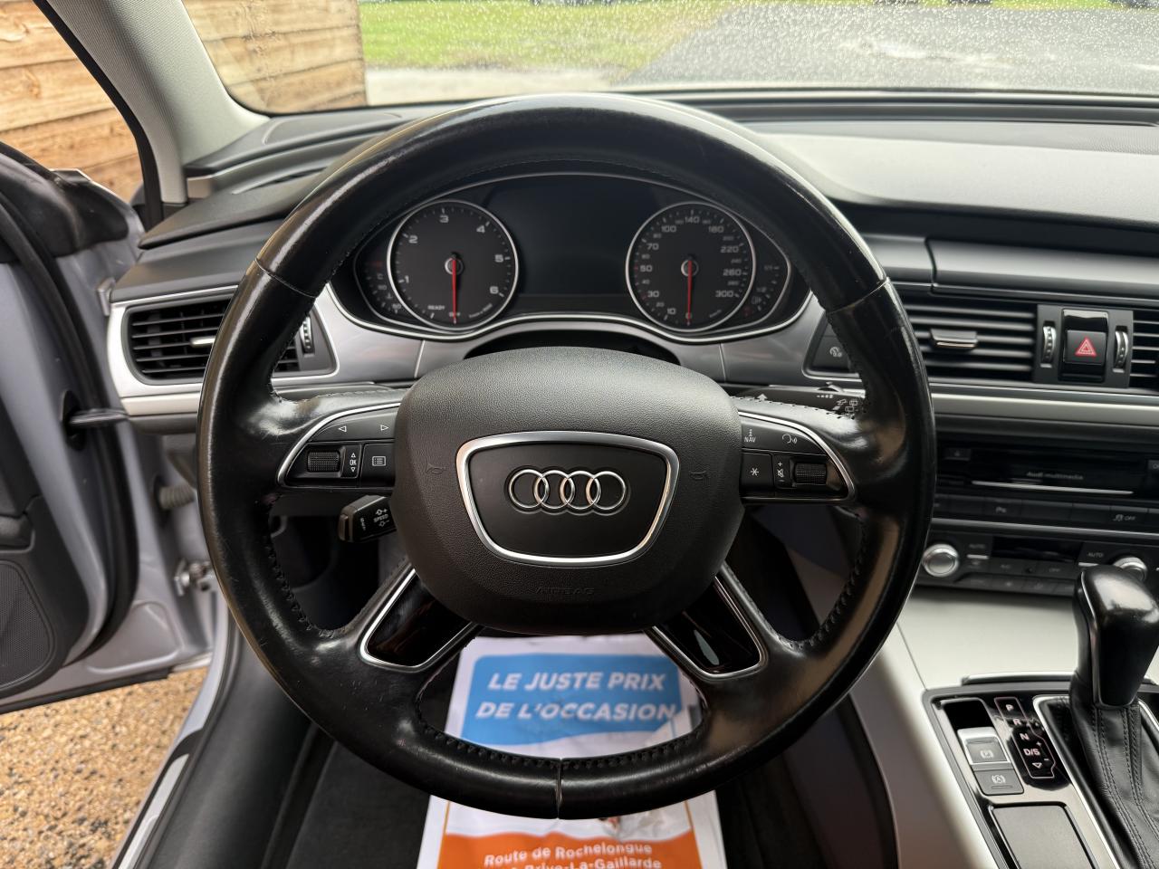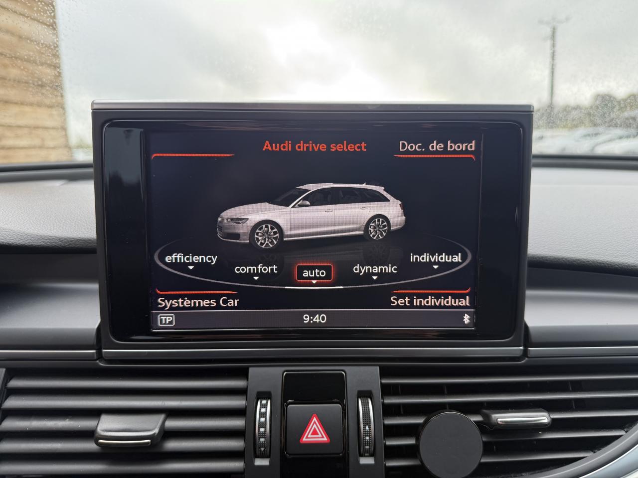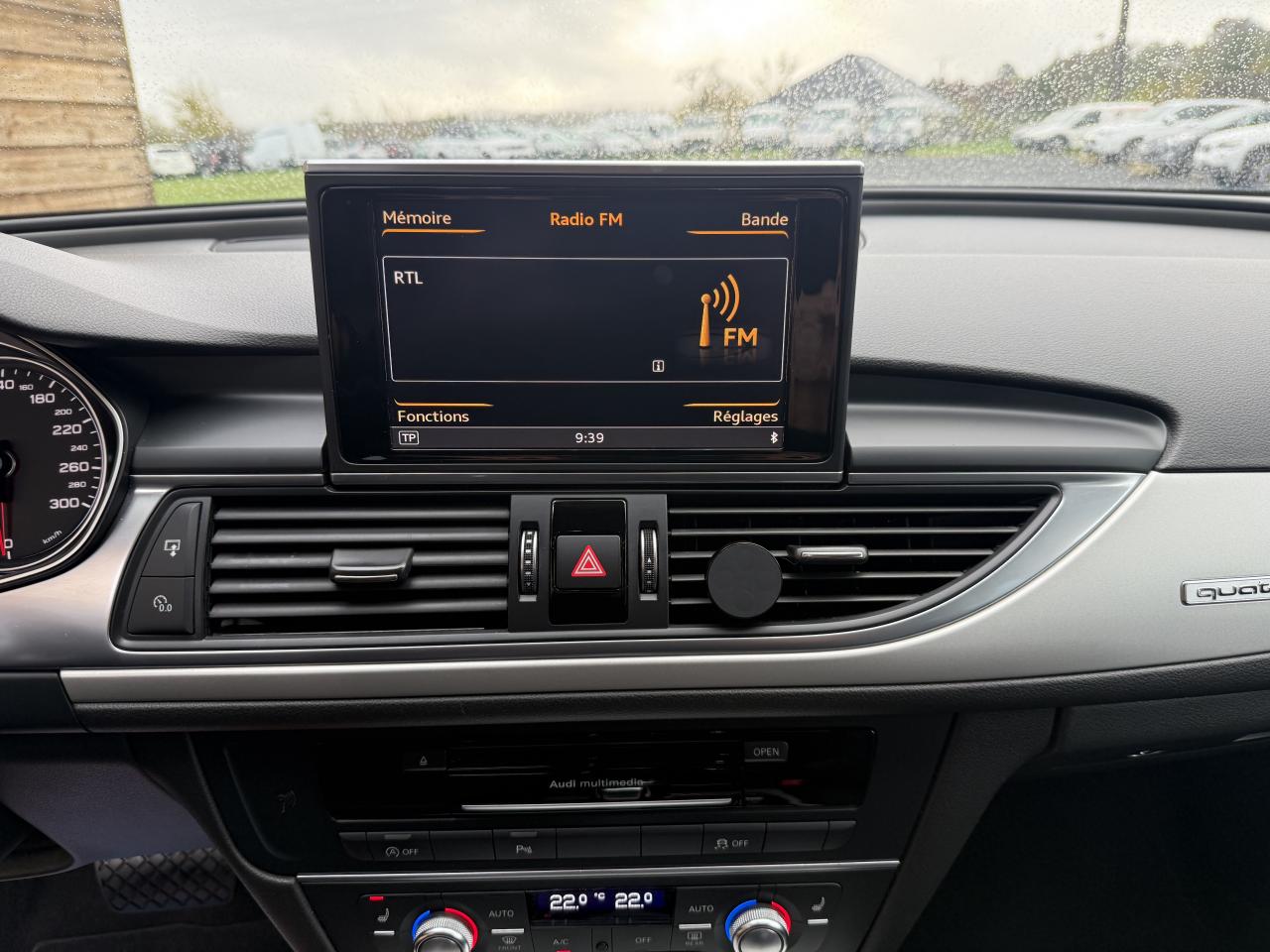 4 oeilletons de fixation sur le plancher du coffre, avec prise de courant de 12 voltsABS (antiblocage de roue) avec répartiteur de freinage EBV et assistance hydraulique au freinage d'urgenceAccoudoir central arrière, rabattable, avec vide-pochesAccoudoir central avant et arrière en cuirAccoudoir central avant pour conducteur et passager avant, avec 2 porte-boissons intégrésAirbags conducteur et passagerAirbags frontaux conducteur et passager grand volume, à deux niveaux de gonflement suivant la gravité du choc, latéraux avant et arrière intégrés aux dossiers des siègesApplications aluminium autour des diffuseurs d'air, de l'écran MMI, sur la commande du frein de stationnement électromécanique et les lève-vitresApplications décoratives en piano laqué noirAppuie-têtes intégraux à l'avant et à l'arrièreASR (antipatinage)Assistance au véhicule basée sur les données de navigationAudi connect en combinaison avec la Navigation MMI plus avec MMI TouchAudi Drive SelectAudi Hold AssistAudi Music InterfaceAudi Parking System Plus avant et arrièreAudi pre senseAudi sound system : amplificateurs à 6 canaux, 10 haut-parleurs dont un central dans le tableau de bord et subwoofer dans le coffre.Puissance totale 180 WAudi Tracking System : système d'immobilisation et de localisation du véhicule par satelliteBaguette décorative style aluminium entre le pare-chocs et l'ouverture du capot de coffreBanquette arrière : trois places, rabattable 40/60Banquette arrière rabattable : système de déverrouillage à distance des dossiers situé dans la garniture latérale du coffreBoîte à gants grand volume, éclairée et verrouillableCalandre Audi Singleframe chromée avec lamelles horizontales laquées noirCapacité du réservoir : 73 litresCapteur de pluieCarrosserie hybride en aluminium (capot moteur, hayon, portières et ailes)Ceintures de sécurité trois points à enrouleur à toutes les places avec prétensionneur réversibleCendrier et allume-cigare éclairés à l'avant et à l'arrièreChauffage des sièges avantCiel de pavillon en tissu, en combinaison avec la couleur intérieure choisie, en argent lunaire, beige soie ou noirClignotants avec fonction autoroute : une brève impulsion sur le comodo active 3 cycles de clignotementClimatisation automatique confort 4 zonesCoffre à bagages à ouverture et fermeture automatiques et assisté électriquementCoffre à bagages grand volume à grande largeur de chargementContrôle de la pression des pneus avec signaux acoustique et visuel de perte de pressionCouvre-bagages coulissant automatiquement par glissière le long du montant DDémarrage et arrêt du moteur par simple impulsion sur le bouton moteur Start/Stop intégré à la console centrale, nécessite simplement d'avoir la clé sur soiDétecteur de luminosité : allume et éteint automatiquement les feux de croisement suivant les conditions de luminosité ; inclut fonction coming home/leaving homeDirection électromécanique à assistance variableDouble vérin pneumatique d'ouverture de hayonEclairage intérieur à temporisation à l'avant et à l'arrière avec contacteurs sur toutes les portières, configurable par MMIEclaireurs et catadioptres actifs sur toutes les portièresEcrous antivolEDS (blocage électronique de différentiel)Ergots de maintien pour sacs à provisionsESC (programme électronique de stabilisation)Essuie glace arrièreFeux de freinage adaptatifs (déclenchement des feux de détresse automatique)Feux stop, feux arrière de recul et antibrouillard halogènes, feux de plaque arrière à LEDFilet de séparation vertical anti-intrusion coffre/habitacleFilet sur le côté droit du coffreFixations pour sièges enfant ISOFIX aux places extérieures arrièreFrein de stationnement électromécanique avec fonction Hold AssistGestionnaire de batterie, commande à l'aide de capteurs une alimentation électrique optimale du véhicule durant la marche et à l'arrêtIdentification du modèle et de la technologie sur la malle arrière ainsi qu'inscription quattro sur la calandre et sur le tableau de bord côté passagerInterface Bluetooth avec Bluetooth AudiostreamingJantes Audi Sport en aluminium coulé 10 branches, 8,5J x 19'' avec pneus 255/40 R19Levier de vitesses en cuir assorti à la couleur intérieure choisieLivre de bord avec étuiLunette arrière dégivrante, avec minuterieMMI TouchOrdinateur de bord couleur 7''Pack brillancePack EclairagePack RangementPare-Brise feuilleté AthermiquePare-soleil conducteur et passager avant rabattables et orientables avec miroir de courtoisie éclairé et occultablePréparation pour crochet d'attelagePréparation pour téléphone portable 2 W (Bluetooth)Projecteurs Xénon plus et feux de jour à LEDProtections latérales anticollisionRégulateur de vitesseRétroviseur intérieur électrochromeRétroviseurs extérieurs électriques et à mémoires, dégivrants, rabattables et jour/nuit automatiqueRétroviseurs extérieurs électriques et dégivrants avec clignotants à LED et laqués dans la couleur de la carrosserieRampes de pavillon en aluminium poliRoue de secours temporaire avec cric de levageSécurité enfant sur les portières arrière et les vitres électriques arrièreSellerie cuir MilanoSièges avant à réglages électriques et à mémoires pour siège conducteurSièges avant Sport à réglages manuels et supports lombaires réglables électriquementSignal sonore pour oubli d'extinction des feuxSorties d'échappement trapézoïdales doubles chromées de chaque côtéSupports lombaires électriques pour les sièges avantSystème Start/ Stop avec récupération d'énergie de freinageTélécommande de verrouillage centralisé à fréquence radio avec ouverture/fermeture confort pour les vitres électriques, le coffre et la trappe à carburantTémoins de contrôle pour airbags, ESC/ASR, adaptive air suspension, EDS, frein de stationnement électromécanique, régulateur de vitesse, feux de route,feux arrière antibroui