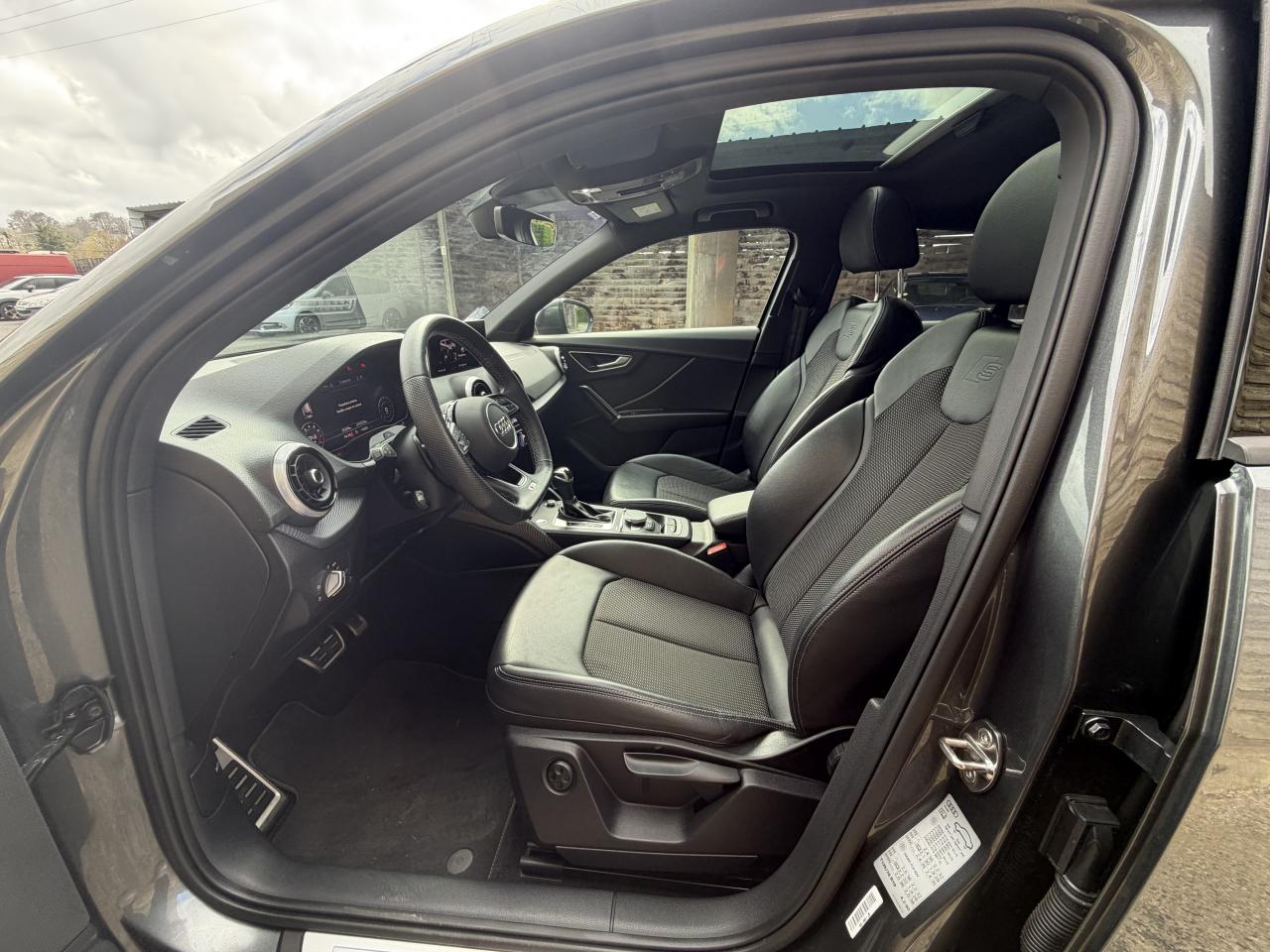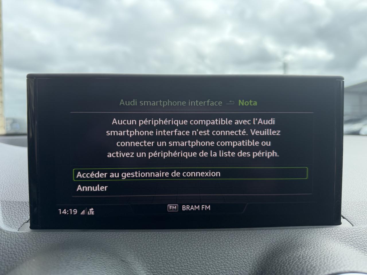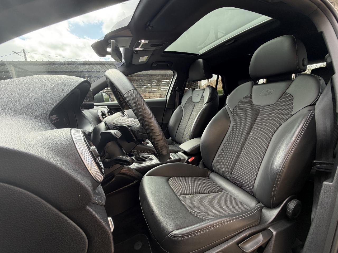 Affichage du contrôle de la pression des pneumatiquesAirbags latéraux à l'avant et système d'airbags de têteApplications décoratives en aluminium brossé matAssistant de feux de routeAudi connect navigation et divertissementAudi connect sécurité et assistance en ligneAudi Drive SelectAudi Hold AssistAudi Music InterfaceAudi phone box avec charge du téléphone par inductionAudi pre sense frontAudi sound system : 10 haut-parleurs incluant un haut-parleur central et un subwoofer ; amplificateur à 6 canaux avec une puissance totale de 180 wattsAudi virtual cockpitAvertissement de sortie de voieBlade en Argent MagnesiumCâbles de recharge pour téléphone portable, compatibles iPhone et AndroidClé confortClimatisation automatique confort 2 zonesDésactivation de l'airbag du passager avantDétecteur d'occupation des sièges avantDétecteur de pluie et allumage automatique des projecteursDirection progressiveDossier de banquette arrière rabattable en deux parties 40:60 ou entièrementFeux arrière à LEDInscription “S line” sur les ailes avantJantes Audi Sport en alliage léger, style trapèzoïdal à 5 branches doubles, 7,0J x 18, pneus 215/50 R18Lève-vitres électriques à l'avant et à l'arrièreMMI navigation avec MMI touchMoulures de seuils avec insert en aluminium et emblème S, éclairéesPack aluminium intérieurPack Assistance StationnementPack ConfortPack ConnectivityPack Eclairage d'ambiancePack Esthétique noirPack Intérieur S linePare-brise avec bandeau pare-soleil grisPeinture intégralePeinture vernie Blanc ArkonaPhares Matrix LED avec clignotants dynamiques à l’arrièreRéception radio numérique, réception des signaux DAB, DAB+ et DMB AudioRégulateur et limiteur de vitesseRétroviseurs extérieurs couleur carrosserieSécurité enfant électriqueSet de réparation pour pneus avec compresseur 12 volts et produit de colmatage pour les pneus, vitesse maximale 80 km/hTapis de sol AV et ARTriangle de présignalisation et trousse de secoursVitres athermiquesVitres surteintées (Privacy glass) : Lunette arrière, vitres de portières arrière et vitres latérales arrière surteintéesVolant Sport S line en cuir style 3 branches avec multifonction avec emblème S (poignées de volant en cuir perforé)