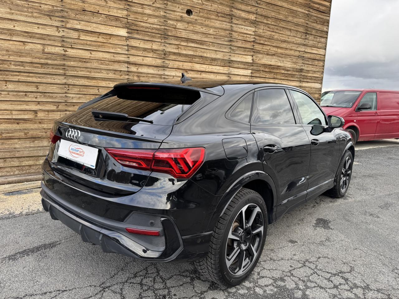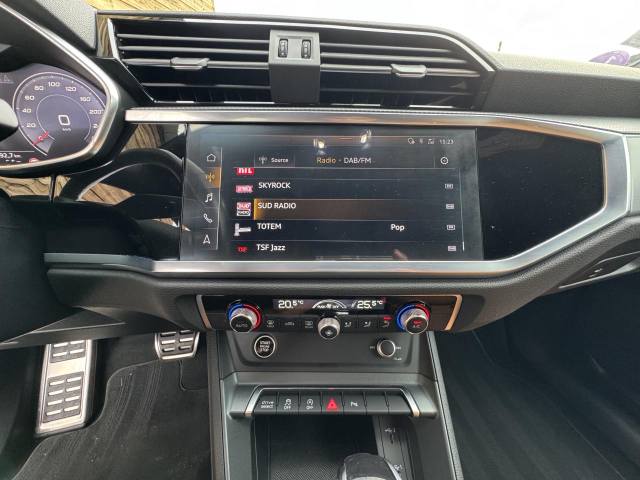 2 prises USB à l’arrière (type-C) et prise 12 volts dans la console centrale arrièreAccoudoir central arrière rabattable avec porte-gobeletsAccoudoir central coulissant en longueur, avec inclinaison réglable et vide-poches relevableAccoudoirs des contre-portes en similicuir monopur 550Appel d’urgence Audi connectApplications décoratives en aluminium brossé mat foncéAppui lombaire à 4 axes pour les sièges avant, réglage électrique, horizontal et verticalAssise de banquette arrière coulissante en longueurAssise de banquette arrière rabattable 40/20/40Assistant de changement de trajectoire "Side Assist" et avertissement de franchissement de ligne "Lane Assist"Audi connect navigation et divertissementAudi connect sécurité et assistance en ligneAudi Drive SelectAudi Hold AssistAudi Parking System PlusAudi pre sense basicAudi pre sense frontAudi virtual cockpit : combiné d'instruments entièrement numérique de 10,25"Ciel de pavillon en tissu noirClé à fréquence radioClimatisation automatique confort 2 zonesCombiné d’instruments entièrement numérique 10,25 poucesContrôle de pression des pneus ( TPMS )Détecteur de pluie et allumage automatique des projecteursDirection assistée électromécanique asservie à la vitesseDirection progressiveDossier de banquette AR réglables en inclinaisonEcrous antivolFixation pour sièges enfants ISOFIX et Top Tether pour les places arrière extérieuresHayon de coffre à ouverture et fermeture électriquesInterface BluetoothInterface USB de type C pour le chargement d’appareils externes uniquementJantes en aluminium coulé 5 branches en V, 7 J x 18 avec pneus 235/55 R18Kit réparationMMI navigation plus avec MMI touchOutillage de bordPack aluminium intérieurPack brillance extérieurPack Eclairage intérieurPack S line ExtérieurPack S line intérieurPare-brise feuilleté, athermique et acoustiquePhares à LED avec clignotants dynamiques à l’arrièreRéception radio numériqueRégulateur de vitesseRétroviseur intérieur électrochrome sans contourRétroviseurs extérieurs couleur carrosserieRétroviseurs extérieurs réglables, dégivrants et rabattables électriquement, incluant fonction rabat automatique pour le rétroviseur côté passager avantSièges avant réglables manuellement : hauteur d’assise, positionnement en longueur, inclinaison du dossier, hauteur des appuie-tête et hauteur des ceinturesSuspensions sportTrousse de secours, triangle de présignalisation et 2 vestes de sécuritéVolant 3 branches multifonctions plus en cuir