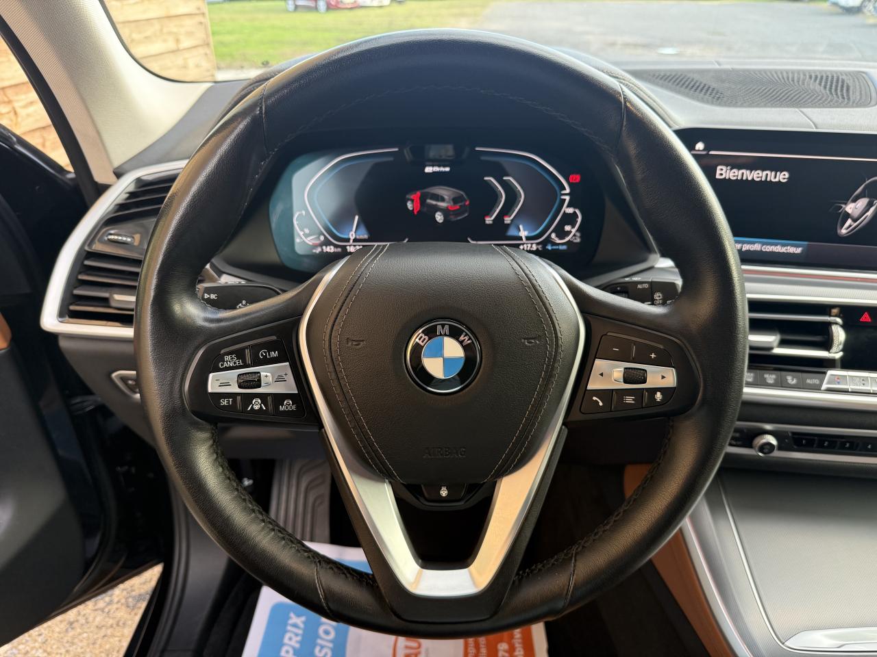 5 siègesABS avec aide au freinage d'urgenceAccoudoir central arrière avec espace de rangement et porte-gobelets (x2)Accoudoir dans la console centrale et dans les portes avant et arrièreAirbag genouxAirbags conducteur et passager (déconnectable) avantAirbags de tête ( 1ere et 2eme rangée)Airbags latéraux conducteur et passager avantAlarme antivolAluminium Line satiné BMW IndividualAppel d'Urgence Intelligent et Appel d'urgence légal (durée de vie de la voiture)Attention Assist : système de détection de somnolenceAvertisseur sonore pour piétonsBaguettes de seuil de porte avec l'inscription BMW à l'avant et à l'arrière illuminéesBanquette arrière rabattable 40/20/40BMW AppsBMW Connected+BMW Intelligent Personal AssistantBMW Live Cockpit Navigation ProBoîte de vitesses automatique Sport avec palettes au volantBouton de démarrage Start/Stop sans manipulation de la cléCâbles de recharge pour prise domestique (230V) et publique (T2-T2) de 5 mètresClé avec application chroméeClés radiocommandées à mémorisation automatique des réglages "Personal Profile"Climatisation automatique 3 zonesColonne de direction réglable électriquement en hauteur et profondeurConnection USB type A (zone des porte boissons)Connection USB type C (dans l'accoudoir central avant)Connectivité avancée sans fil avec recharge par inductionContrôle Dynamique de la Traction DTCContrôle Dynamique de stabilité (DSC)Détecteur de pluie et allumage automatique des projecteursDiffuseurs aérodynamiques latéraux « Air Breather » en chrome perlé avec contour en aluminium satinéDirection à assistance électrique servotronicEclairage d'accompagnement "Follow me Home"Eclairage d'accueilEclairage d’ambianceEcrous antivolEntourage des vitres en aluminium satinéEntrées d’air spécifiques en aluminium satinéFeux arrières à LEDFeux de stop dynamiques clignotantsFixations ISOFIX aux places latérales arrières pour sièges enfantFonction d'arrêt et de redémarrage automatique du moteurFrein de parking électromécaniqueFreins à disques ventilés à l'avant et à l'arrièreGrilles de calandre BMW avec barreaux exclusifs en aluminium mat satiné, contour de calandre en chrome perléGrilles spécifiques en noir brillant dans les entrées d’air latérales avantHayon ouvrant en deux parties avec commande électrique de la partie supérieureHotspot Wi-FiInserts décoratifs en Aluminium "Mesheffect" foncéJantes en alliage léger 19" style 735 à rayons en V, 9 J x 19 / pneus 265/50 R 19Kit EclairageKit rangementLames pour bas de caisse avec baguette décorative en aluminium satinéLimiteur et régulateur de vitesse avec maintien de la vitesse en descenteMesure individuelle de pression des pneumatiquesPack ConfortPack Connected ProPark AssistPlanche de bord en similicuir SensatecPrise 12V (2 dans la planche de bord / console centrale et 1 dans le compartiment à bagage)Projecteurs antibrouillard à LEDProjecteurs avant LEDProtection anti-encastrement à l’avant et à l’arrière aspect inoxRétroviseur conducteur à miroir asphériqueRétroviseurs avec rappel de clignotantRétroviseurs extérieurs électriques couleur carrosserie dégivrantRétroviseurs extérieurs rabattables électriquement et rétroviseurs extérieur gauche et intérieur jour/nuit automatiqueRadars de stationnement avant et arrière PDCRails de toit Aluminium Line satinéRenforts de protection contre les impacts latérauxSélecteur de mode de conduite - 3 modes : "ECO PRO", "Confort" et "Sport"Sellerie Cuir "Vernasca" perforée SchwarzServices Après-Vente connectés BMW TeleServicesServices eDrive spécifiquesSeuils de portes en aluminium avec inscription « BMW xLineSiège conducteur électrique à mémoiresSièges avant chauffantsSorties d’échappement en aluminium satinéSuspension pneumatique à l'avant et l'arrière avec correcteur d’assietteSystème de récupération de l'énergie au freinageTapis de sol en veloursTechnologie 4 roues motrices intelligente xDriveTechnologie BMW TwinPower TurboTeinte de carrosserie "Schwarz" unieTriangle de présignalisation avec kit de premiers secoursTuner DABVitres avec protection contre la chaleur et le soleilVolant Sport gainé cuir
