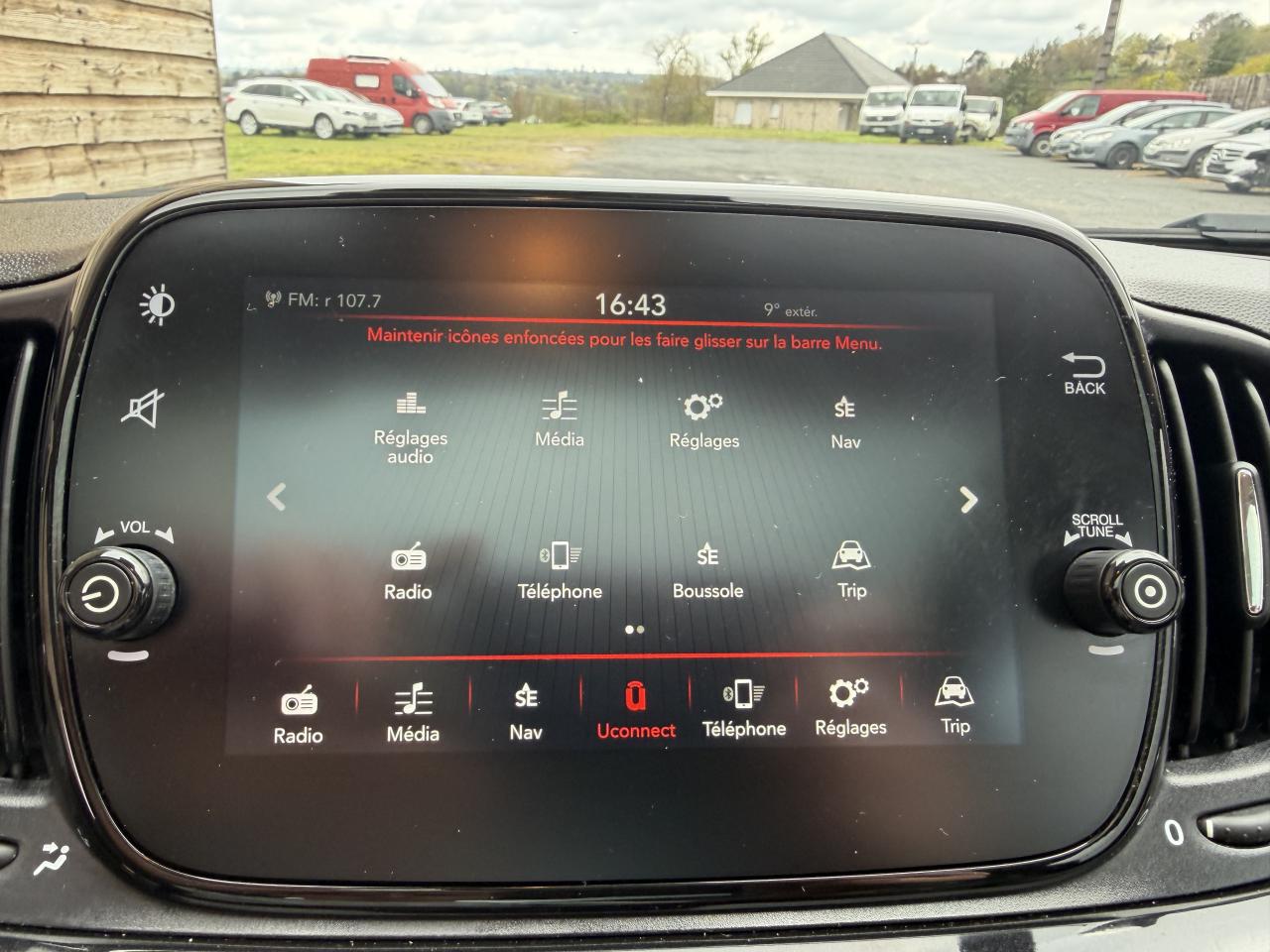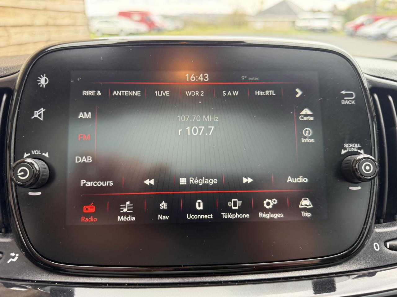 ABS – antiblocage des roues avec répartiteur de freinage EBDAir conditionné avec filtre à pollenAirbag Fiat de genouxAirbags fiat conducteur et passagerAirbags Fiat de toitAirbags Fiat latéraux avantAppuie-tête à l'avant, réglables en hauteurAssistance au freinage d'urgenceAttaches IsofixBanquette arrière fractionnable 50/50Banquette arrière rabattable avec appui-têteCondamnation automatique des ouvrants en roulantCondamnation centralisée à distanceDirection assistée Dualdrive avec fonction"City"Dispositif d'éclairage ‘'Follow me home''Eclairage du coffreESP - contrôle électronique de stabilité avec “Hill Holder"Feux de jour à LEDJantes alliage 15” New LoungeKit ChromeLimiteur de vitessePare-chocs couleur carrosseriePoignée de maintien intérieurePoignées de porte chroméesProjecteurs antibrouillardRadar de reculRégulateur de vitesseRétroviseurs extérieurs à réglage électrique et sonde de température extérieureRétroviseurs extérieurs couleur carrosserieSellerie Tissu motifs Prince de GallesSiège conducteur réglable en hauteurToit vitré panoramique fixe avec pare-soleilUconnect Radio 5" LIVE (Dual Tuner/USB/AUX/Bluetooth)Vitres avant électriquesVolant Gainé de cuir avec commandes audioVolant réglable en hauteur
