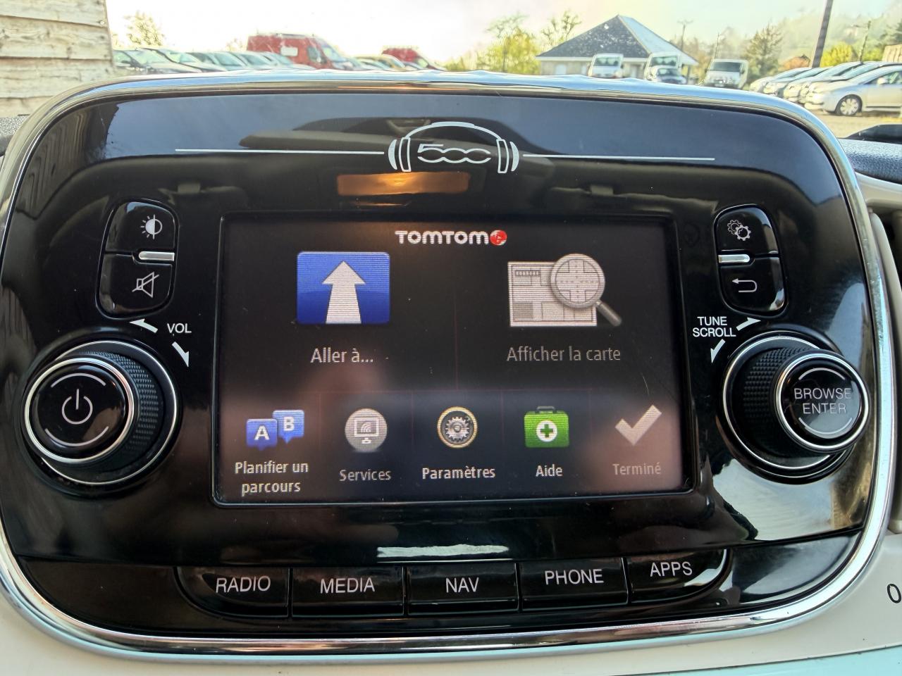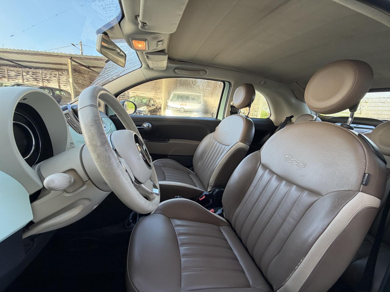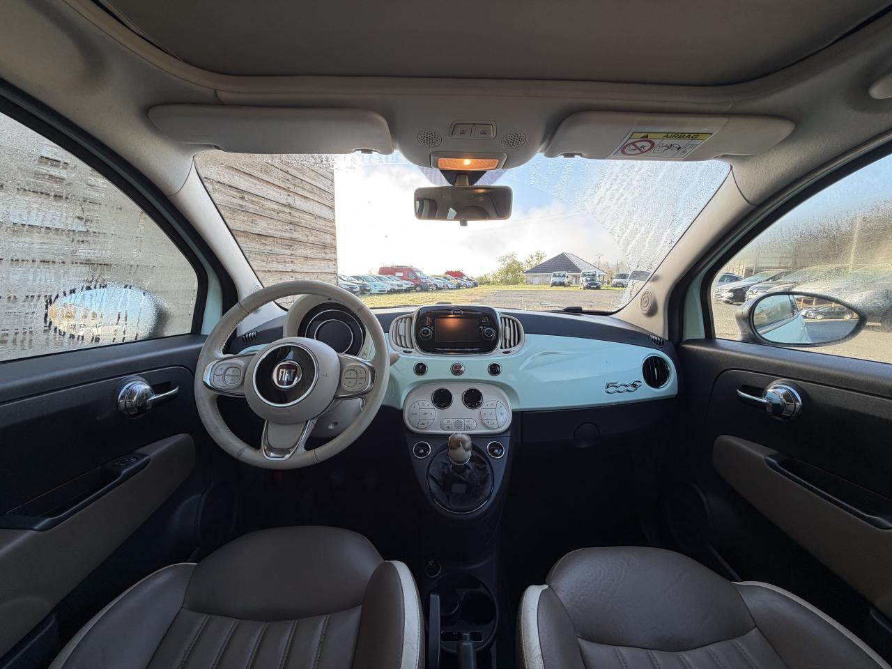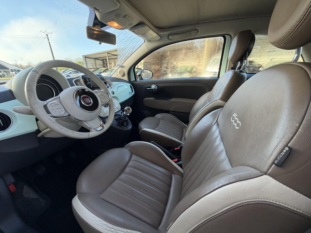 ABS – antiblocage des roues avec répartiteur de freinage EBDAirbag Fiat de genouxAirbags fiat conducteur et passagerAirbags Fiat de toitAirbags Fiat latéraux avantAppuie-tête à l'avant, réglables en hauteurAssistance au freinage d'urgenceAttaches IsofixBaguettes latérales couleur carrosserie (avec logo 500)Banquette arrière rabattable 50/50 et appuie-tête arrièreCapote à ouverture éléctrique et lunette arrière en verre à dégivrage éléctriqueClimatisation automatique avec filtre à pollenCombiné de bord à affichage numérique TFT 7''Condamnation automatique des ouvrants en roulantCondamnation centralisée à distanceCoques de rétroviseurs noiresDirection assistée Dualdrive avec fonction"City"Dispositif d'éclairage ‘'Follow me home''Eclairage du coffreESP - contrôle électronique de stabilité avec “Hill Holder"Feux de jour à LEDJantes alliage 16” New ClubKit ChromeKit fumeurPare-chocs couleur carrosseriePoignée de maintien intérieurePoignées de porte chroméesProjecteurs antibrouillardRadar de reculRétroviseurs extérieurs réglables électriquement et dégivrants avec sonde de températureRoue de secours “galette”Sellerie cuir Poltrona FrauSiège conducteur réglable en hauteurToit noir laquéUconnect Radio 5" NAV LIVE (Dual Tuner/USB/AUX/Bluetooth)Vitres avant électriquesVitres latérales et lunette arrière surteintéesVolant Gainé de cuir avec commandes audioVolant réglable en hauteur
