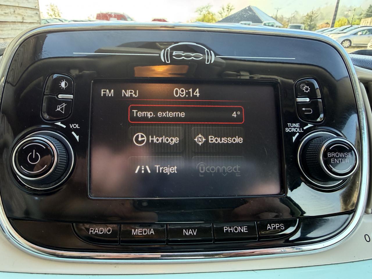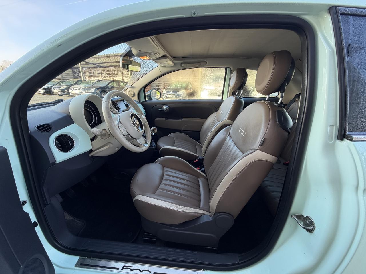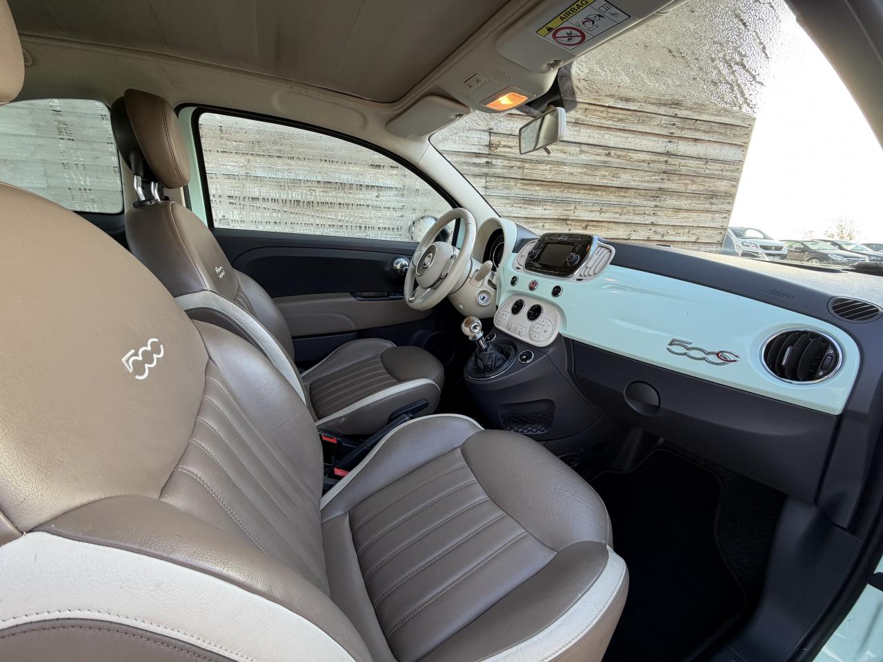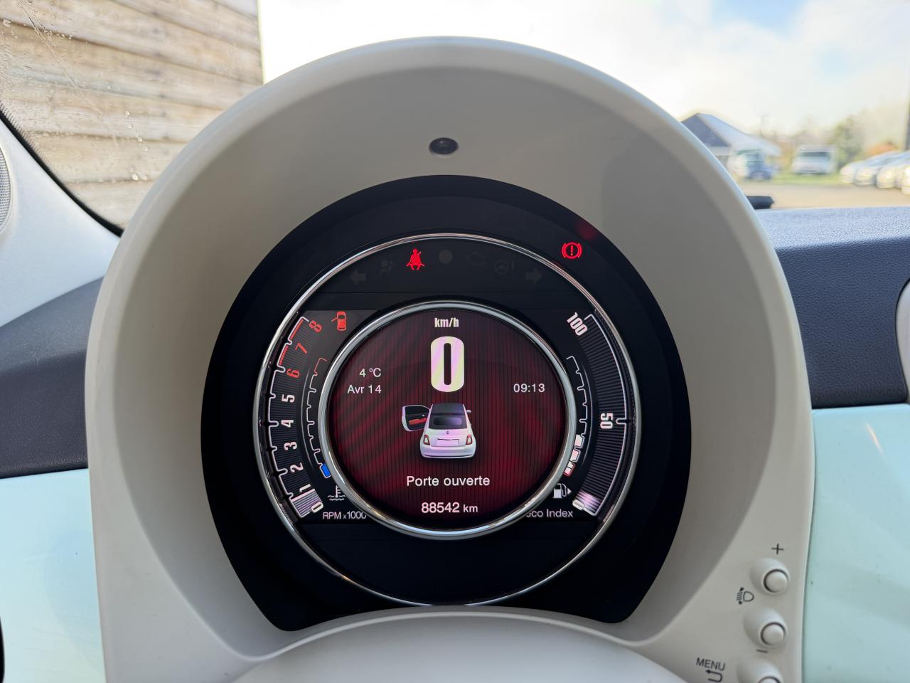 ABS – antiblocage des roues avec répartiteur de freinage EBDAirbag Fiat de genouxAirbags fiat conducteur et passagerAirbags Fiat de toitAirbags Fiat latéraux avantAppuie-tête à l'avant, réglables en hauteurAssistance au freinage d'urgenceAttaches IsofixBaguettes latérales couleur carrosserie (avec logo 500)Banquette arrière rabattable 50/50 et appuie-tête arrièreCapote à ouverture éléctrique et lunette arrière en verre à dégivrage éléctriqueClimatisation automatique avec filtre à pollenCombiné de bord à affichage numérique TFT 7''Condamnation automatique des ouvrants en roulantCondamnation centralisée à distanceCoques de rétroviseurs noiresDirection assistée Dualdrive avec fonction"City"Dispositif d'éclairage ‘'Follow me home''Eclairage du coffreESP - contrôle électronique de stabilité avec “Hill Holder"Feux de jour à LEDJantes alliage 16” New ClubKit ChromeKit fumeurPare-chocs couleur carrosseriePoignée de maintien intérieurePoignées de porte chroméesProjecteurs antibrouillardRadar de reculRétroviseurs extérieurs réglables électriquement et dégivrants avec sonde de températureRoue de secours “galette”Sellerie cuir Poltrona FrauSiège conducteur réglable en hauteurToit noir laquéUconnect Radio 5" NAV LIVE (Dual Tuner/USB/AUX/Bluetooth)Vitres avant électriquesVitres latérales et lunette arrière surteintéesVolant Gainé de cuir avec commandes audioVolant réglable en hauteur