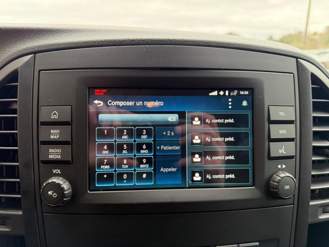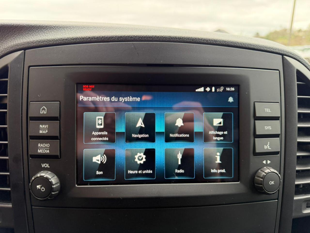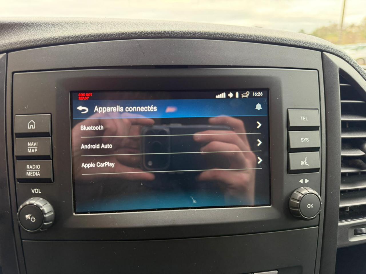 Ce Vito dispose d’un équipement complet alliant sécurité, confort et connectivité. Parmi les éléments notables : affichage de la pression des pneumatiques, aide au parking Active, Audio 40 avec écran tactile 7", Apple CarPlay/Android Auto, climatisation, régulateur/limiteur (TEMPOMAT), capteur de pluie, volant cuir multifonctions, jantes acier 17", caméra de recul et radio DAB.