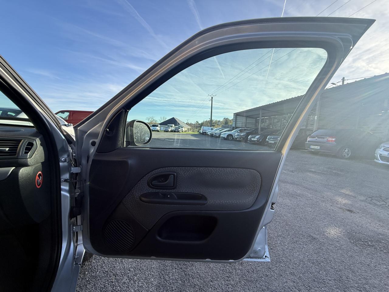 2 anneaux d'arrimage dans le coffre3 appuie-tête arrière réglables en hauteur3 appuie-têtes arrière "virgule"ABS avec aide au freinage d'urgenceAirbags conducteur et passagerAirbags latéraux "thorax"Alerte d'oubli de bouclage de la ceinture conducteur avec indicateur sonoreAppuis-tête avantBacs sur panneaux de portes avantBaguettes de protection latérale : Ton caisseBaguettes latérales de protection lisses ton caisseBanquette arrière rabattable 1/3-2/3Boîte à gants grand volumeBoucliers avant et arrière ton caisseBoucliers avant et arrière ton caisse sans bourrelet de protectionBouton de frein à main carbone foncéBouton de frein à main chroméCeintures arrière 3 pointsCeintures avant réglables en hauteur avec prétensionneurs et limiteur d'effort intégréCendriers et allume-cigaresClé (avec condamnation et décondamnation à distance)Climatisation manuelleCoiffe de rétroviseur extérieur noireCoiffe de rétroviseur extérieur ton caisseCondamnation automatique en roulantDirection assistéeEmbouts de baguettes noirsEmbouts de baguettes ton caisseEnjoliveur supérieur de hayon rapporté noir matEnjoliveur supérieur de hayon rapporté ton caisseEnjoliveurs 14" "Cyclade"Essuie vitre à cadencement variableFiltre à pollenFiltre d'habitacleFrein à main et habillage de frein à main carbone foncéGrand vide-poches centralIndicateur de niveau d'essenceIndicateur de niveau d'huile, temporiséIndicateur de température d'eauIndicateur de température d'extérieureKit gonflage de réparationLève-vitre électrique à impulsion côté conducteurLève-vitre électrique conducteur et passagerLève-vitres à impulsion côté conducteurLimiteur d'effort intégré aux ceintures arrière latéralesLunette AR chauffanteMolette de réglage en site des projecteursMontre incluse dans le tableau de bordOrdinateur de bordPare-soleil conducteur avec miroir de courtoisie et rabatPare-soleil conducteur sans miroir de courtoisiePare-soleil passager avec miroir de courtoisie sans rabatPeinture opaquePoche aumônière au dos du siège avant droitPoignée de maintien pour passager avantPoignées de porte latérales ton caissePoignées de portes latérales ton caissePommeau de commande de boîte de vitesse cuir avec vignette chroméePortillon de vide-poches contenant range-lunettes, porte-cartes de crédit, porte-crayonsProjecteurs à double optiqueProjecteurs additionnelsRadiosat 40W CD, avec afficheur déporté et prise RCARéglage en site manuel des projecteursRepose-pied conducteurRétroviseur conducteur à miroir sphériqueRétroviseur ton caisseRétroviseurs dégivrants avec capteur de température extérieureRétroviseurs extérieurs manuelsSans cache-bagagesSécurité enfant sur chaque porte arrièreSellerie carbone / gris argentéSiège avant avec maintien renforcéSiège conducteur avec réglage en hauteurSiège conducteur réglable en hauteurSièges avant avec maintien renforcéSystème de fixation ISOFIX pour sièges enfants aux 2 places latérales arrièreTableau de bord éclairage ambreTableau de bord multiplexé, éclairage ambreTémoin décondamnation airbag passagerVide-poches de planche de bord mono-volume avec grand portillonVitres arrière manuellesVitres teintéesVolant cuir 3 branchesVolant et pommeau de levier de vitesse en cuirVolant réglable en hauteur